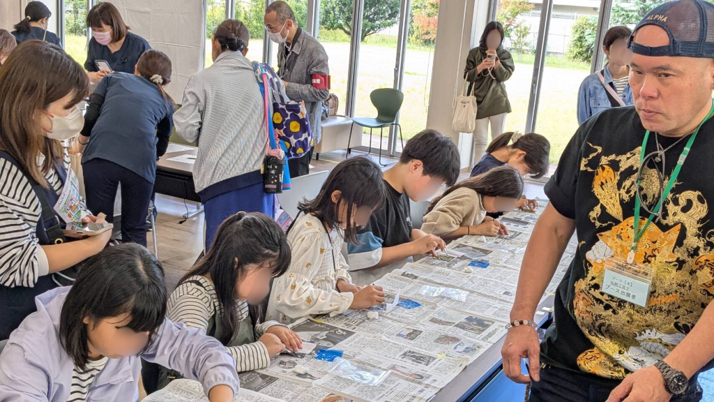 40人以上の児童に、金箔貼り体験ワークショップをしてもらいました。